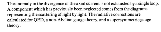 The anomaly in the divergence of the axial current is not exhausted by a single loop. A component which has previously been neglected comes from the diagrams representing the scattering of light by light. The radiative corrections are calculated for QED, a non-Abelian gauge theory, and a supersymmetric gauge theory.
