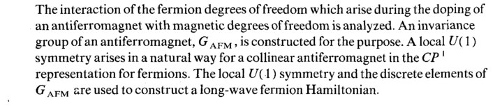 Fermion states in an antiferromagnet in connection with a local U/(1) symmetry