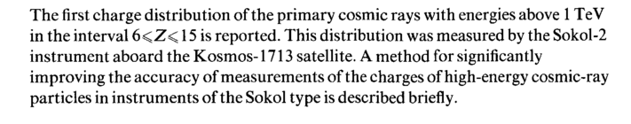 The first charge distribution of the primary cosmic rays with energies above 1 TeV in the interval 6<Z< 15 is reported. This distribution was measured by the Sokol-2 instrument aboard the Kosmos-1713 satellite. A method for significantly improving the accuracy of measurements of the charges of high-energy cosmic-ray particles in instruments of the Sokol type is described briefly.