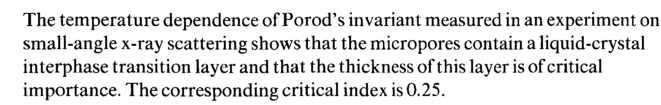 The temperature dependence of Porod's invariant measured in an experiment on small-angle x-ray scattering shows that the micropores contain a liquid-crystal interphase transition layer and that the thickness of this layer is of critical importance. The corresponding critical index is 0.25.