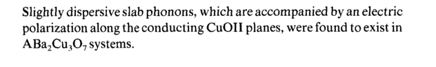 Slightly dispersive slab phonons, which are accompanied by an electric polarization along the conducting CuOII planes, were found to exist in ABa