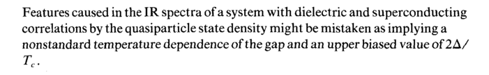 Features caused in the IR spectra of a system with dielectric and superconducting correlations by the quasiparticle state density might be mistaken as implying a nonstandard temperature dependence of the gap and an upper biased value of 2Δ/