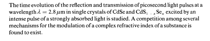 The time evolution of the reflection and transmission of picosecond light pulses at a wavelength λ = 2.8 μνα in single crystals of CdSe and CdS^ _ x $qx excited by an intense pulse of a strongly absorbed light is studied. A competition among several mechanisms for the modulation of a complex refractive index of a substance is found to exist.