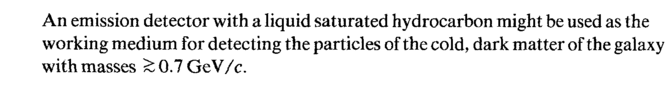 An emission detector with a liquid saturated hydrocarbon might be used as the working medium for detecting the particles of the cold, dark matter of the galaxy with masses ^0.7 GeV/c.