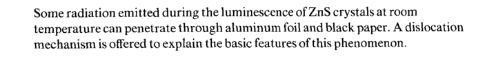 Some radiation emitted during the luminescence of ZnS crystals at room temperature can penetrate through aluminum foil and black paper. A dislocation mechanism is offered to explain the basic features of this phenomenon.