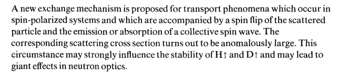 A new exchange mechanism is proposed for transport phenomena which occur in spin-polarized systems and which are accompanied by a spin flip of the scattered particle and the emission or absorption of a collective spin wave. The corresponding scattering cross section turns out to be anomalously large. This circumstance may strongly influence the stability of Η Τ and Dt and may lead to giant effects in neutron optics.