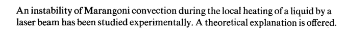 An instability of Marangoni convection during the local heating of a liquid by a laser beam has been studied experimentally. A theoretical explanation is offered.