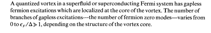 A quantized vortex in a superfluid or superconducting Fermi system has gapless fermion excitations which are localized at the core of the vortex. The number of branches of gapless excitations—the number of fermion zero modes—varies from 0 to eF/A > 1, depending on the structure of the vortex core.