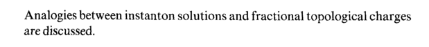 Analogies between instanton solutions and fractional topological charges are discussed.