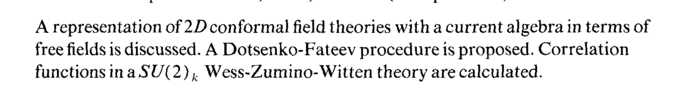 A representation of ID con formal field theories with a current algebra in terms of free fields is discussed. A Dotsenko-Fateev procedure is proposed. Correlation functions in aSU(2)k Wess-Zumino-Witten theory are calculated.
