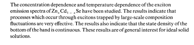 The concentration dependence and temperature dependence of the exciton emission spectra of Znx Cd x _ x Se have been studied. The results indicate that processes which occur through excitons trapped by large-scale composition fluctuations are very effective. The results also indicate that the state density of the bottom of the band is continuous. These results are of general interest for ideal solid solutions.