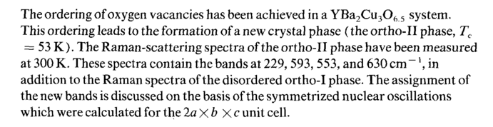 The ordering of oxygen vacancies has been achieved in a YBa2Cu306 5 system. This ordering leads to the formation of a new crystal phase (the ortho-II phase, Tc = 53 К). The Raman-scattering spectra of the ortho-II phase have been measured at 300 K. These spectra contain the bands at 229, 593, 553, and 630 cm - \ in addition to the Raman spectra of the disordered ortho-I phase. The assignment of the new bands is discussed on the basis of the symmetrized nuclear oscillations which were calculated for the 2aXb X с unit cell.