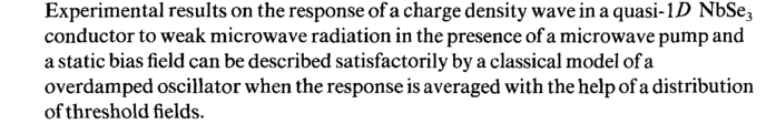 Experimental results on the response of a charge density wave in a quasiID NbSe3 conductor to weak microwave radiation in the presence of a microwave pump and a static bias field can be described satisfactorily by a classical model of a overdamped oscillator when the response is averaged with the help of a distribution of threshold fields.
