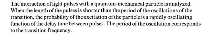 The interaction of light pulses with a quantum-mechanical particle is analyzed. When the length of the pulses is shorter than the period of the oscillations of the transition, the probability of the excitation of the particle is a rapidly oscillating function of the delay time between pulses. The period of the oscillation corresponds to the transition frequency.