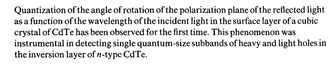 Quantization of the angle of rotation of the polarization plane of the reflected light as a function of the wavelength of the incident light in the surface layer of a cubic crystal of CdTe has been observed for the first time. This phenomenon was instrumental in detecting single quantum-size subbands of heavy and light holes in the inversion layer of я-type CdTe.