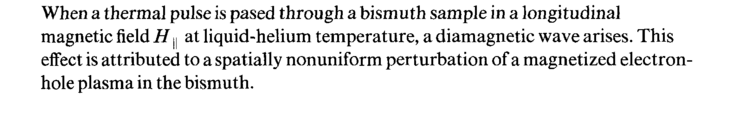 When a thermal pulse is pased through a bismuth sample in a longitudinal magnetic field Η у at liquid-helium temperature, a diamagnetic wave arises. This effect is attributed to a spatially nonuniform perturbation of a magnetized electron-hole plasma in the bismuth.