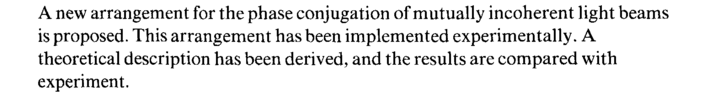 A new arrangement for the phase conjugation of mutually incoherent light beams is proposed. This arrangement has been implemented experimentally. A theoretical description has been derived, and the results are compared with experiment.