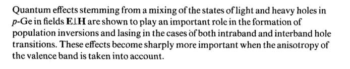 Quantum effects in the formation of population inversions and lasing in germanium hot-hole system