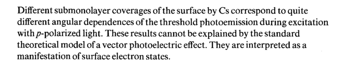 Different submonolayer coverages of the surface by Cs correspond to quite different angular dependences of the threshold photoemission during excitation with /?-polarized light. These results cannot be explained by the standard theoretical model of a vector photoelectric effect. They are interpreted as a manifestation of surface electron states.