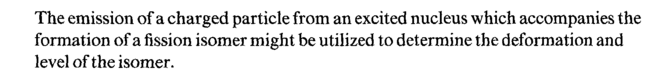 The emission of a charged particle from an excited nucleus which accompanies the formation of a fission isomer might be utilized to determine the deformation and level of the isomer.