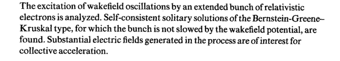 The excitation of wakefield oscillations by an extended bunch of relativistic electrons is analyzed. Self-consistent solitary solutions of the Bernstein-Greene-Kruskal type, for which the bunch is not slowed by the wakefield potential, are found. Substantial electric fields generated in the process are of interest for collective acceleration.