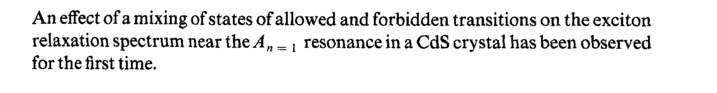 An effect of a mixing of states of allowed and forbidden transitions on the exciton relaxation spectrum near the A n = l resonance in a CdS crystal has been observed for the first time.