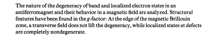 The nature of the degeneracy of band and localized electron states in an antiferromagnet and their behavior in a magnetic field are analyzed. Structural features have been found in the g-factor: At the edge of the magnetic Brillouin zone, a transverse field does not lift the degeneracy, while localized states at defects are completely nondegenerate.