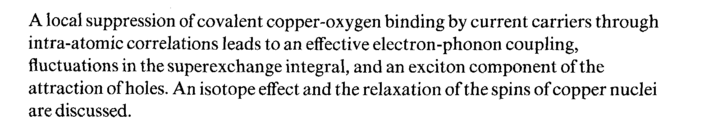 A local suppression of covalent copper-oxygen binding by current carriers through intra-atomic correlations leads to an effective electron-phonon coupling, fluctuations in the super exchange integral, and an exciton component of the attraction of holes. An isotope effect and the relaxation of the spins of copper nuclei are discussed.
