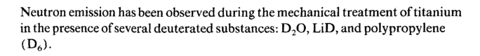 Neutron emission has been observed during the mechanical treatment of titanium in the presence of several deuterated substances: D20, LiD, and polypropylene (D6).
