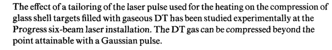 The effect of a tailoring of the laser pulse used for the heating on the compression of glass shell targets filled with gaseous DT has been studied experimentally at the Progress six-beam laser installation. The DT gas can be compressed beyond the point attainable with a Gaussian pulse.
