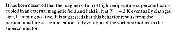 It has been observed that the magnetization of high-temperature superconductors cooled in an external magnetic field and held in it at Τ = 4.2 К eventually changes sign, becoming positive. It is suggested that this behavior results from the particular nature of the nucleation and evolution of the vortex structure in the superconductor.