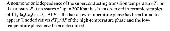 A nonmonotonic dependence of the superconducting transition temperature Tc on the pressure Pat pressures of up to 200 kbar has been observed in ceramic samples of Τ12÷Á2óÁ2óÉÚï x. At P~ 40 kbar a low-temperature phase has been found to appear. The derivatives dTc /dPoithe high-temperature phase and the low-temperature phase have been determined.