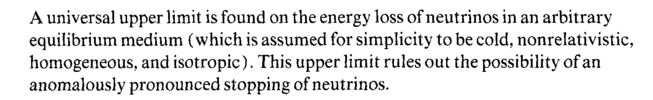 A universal upper limit is found on the energy loss of neutrinos in an arbitrary equilibrium medium (which is assumed for simplicity to be cold, nonrelativistic, homogeneous, and isotropic). This upper limit rules out the possibility of an anomalously pronounced stopping of neutrinos.