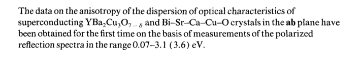 The data on the anisotropy of the dispersion of optical characteristics of superconducting YBa2Cu307.... δ and Bi-Sr-Ca-Cu-O crystals in the ab plane have been obtained for the first time on the basis of measurements of the polarized reflection spectra in the range 0.07-3.1 (3.6) eV.