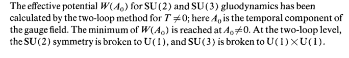 The effective potential W(A0) forSU(2) and SU(3) gluodynamics has been calculated by the two-loop method for Τ Φ 0; here A0 is the temporal component of the gauge field. The minimum of W(A0) is reached at A0 ^ 0. At the two-loop level, the SU(2) symmetry is broken to U( 1), and SU(3) is broken to U( ί) X U( 1).