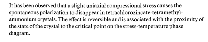 It has been observed that a slight uniaxial compressional stress causes the spontaneous polarization to disappear in tetrachlorozincate-tetramethyl-ammonium crystals. The effect is reversible and is associated with the proximity of the state of the crystal to the critical point on the stress-temperature phase diagram.