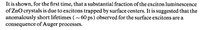 It is shown, for the first time, that a substantial fraction of the exciton luminescence of ZnO crystals is due to excitons trapped by surface centers. It is suggested that the anomalously short lifetimes (~ 60 ps) observed for the surface excitons are a consequence of Auger processes.