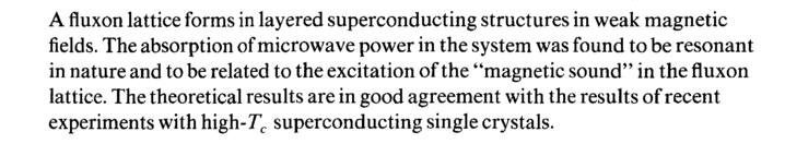 A fluxon lattice forms in layered superconducting structures in weak magnetic fields. The absorption of microwave power in the system was found to be resonant in nature and to be related to the excitation of the "magnetic sound" in the fluxon lattice. The theoretical results are in good agreement with the results of recent experiments with high-Tc superconducting single crystals.