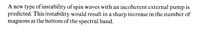 A new type of instability of spin waves with an incoherent external pump is predicted. This instability would result in a sharp increase in the number of magnons at the bottom of the spectral band.