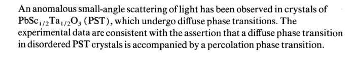An anomalous small-angle scattering of light has been observed in crystals of PbSc, /2Ta, /203 (PST), which undergo diffuse phase transitions. The experimental data are consistent with the assertion that a diffuse phase transition in disordered PST crystals is accompanied by a percolation phase transition.