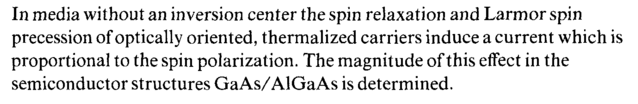 In media without an inversion center the spin relaxation and Larmor spin precession of optically oriented, thermalized carriers induce a current which is proportional to the spin polarization. The magnitude of this effect in the semiconductor structures GaAs/AlGaAs is determined.