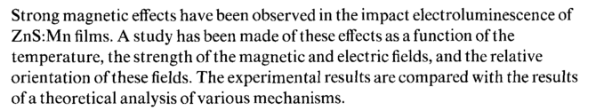 Strong magnetic effects have been observed in the impact electroluminescence of ZnS:Mn films. A study has been made of these effects as a function of the temperature, the strength of the magnetic and electric fields, and the relative orientation of these fields. The experimental results are compared with the results of a theoretical analysis of various mechanisms.