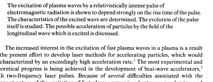 The excitation of plasma waves by a relativistically intense pulse of electromagnetic radiation is shown to depend strongly on the rise time of the pulse. The characteristics of the excited wave are determined. The evolution of the pulse itself is studied. The possible acceleration of particles by the field of the longitudinal wave which is excited is discussed. The increased interest in the excitation of fast plasma waves in a plasma is a result the present effort to develop laser methods for accelerating particles, which would characterized by an exceedingly high acceleration rate.1 The most experimental and :oretical progress is being achieved in the development of beat-wave accelerators,2 ;h two-frequency laser pulses. Because of several difficulties associated with the