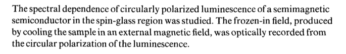 The spectral dependence of circularly polarized luminescence of a semimagnetic semiconductor in the spin-glass region was studied. The frozen-in field, produced by cooling the sample in an external magnetic field, was optically recorded from the circular polarization of the luminescence.
