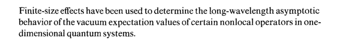 Finite-size effects have been used to determine the long-wavelength asymptotic behavior of the vacuum expectation values of certain nonlocal operators in one-dimensional quantum systems.