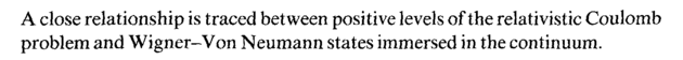 A close relationship is traced between positive levels of the relativistic Coulomb problem and Wigner-Von Neumann states immersed in the continuum.