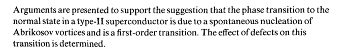 Arguments are presented to support the suggestion that the phase transition to the normal state in a type-II superconductor is due to a spontaneous nucleation of Abrikosov vortices and is a first-order transition. The effect of defects on this transition is determined.