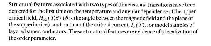 Structural features associated with two types of dimensional transitions have been detected for the first time on the temperature and angular dependence of the upper critical field, Hc2 (Τ,θ) (θ is the angle between the magnetic field and the plane of the supperlattice), and on that of the critical current, IC(T), for model samples of layered superconductors. These structural features are evidence of a localization of the order parameter.