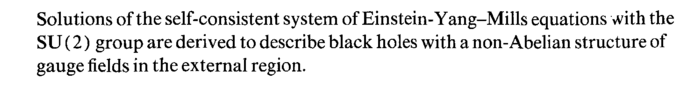 Solutions of the self-consistent system of Einstein-Yang-Mills equations with the SU (2) group are derived to describe black holes with a non-Abelian structure of gauge fields in the external region.