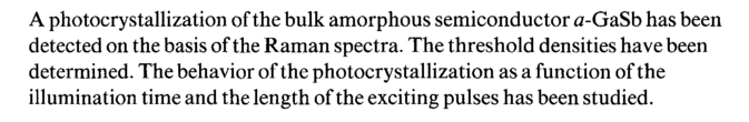 A photocrystallization of the bulk amorphous semiconductor α-GaSb has been detected on the basis of the Raman spectra. The threshold densities have been determined. The behavior of the photocrystallization as a function of the illumination time and the length of the exciting pulses has been studied.
